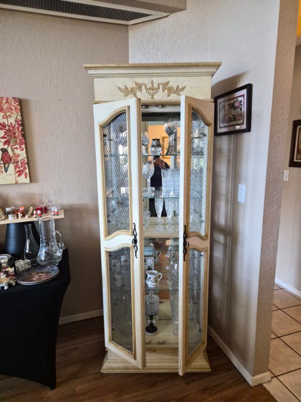 2 leather recliners sofas, Tiffany style lamp, grandfather clock, Apple watch, Lenox Crystal, Curio cabinet, designer purses, artwork, crystal, dining room set with 8 chairs, cast iron patio set, outdoor round table with 6 chairs, coffee table, cookie jars, jewelry, large mirror, buffet, chine cabinet, shoes, lift chair, king headboard, queen bed, French dresser, bookcases, 2 mountain bikes, 2 refrigerators, washer/dryer, green modern bedroom set, copper pots, plate collection, Christmas items, 3 electric wheelchairs, hospital bed, records, walker, medical equipment, tools! Too much to list!